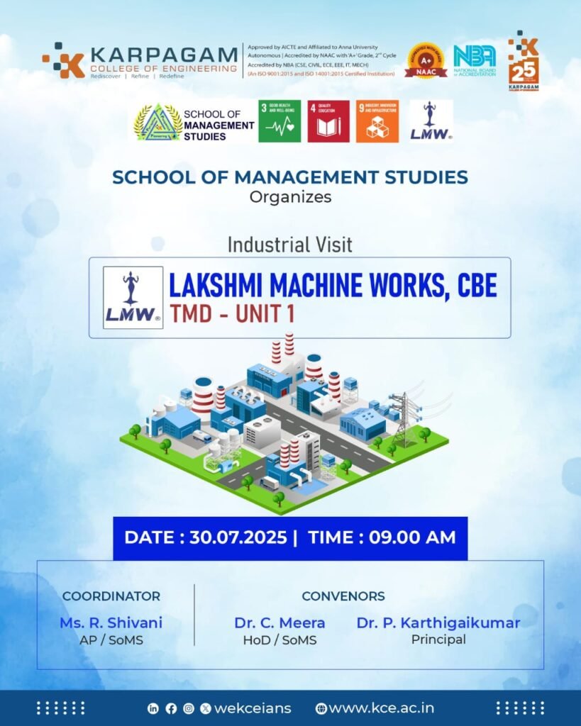 Industrial visit for its students to Lakshmi Machine Works (LMW), TMD – Unit 1