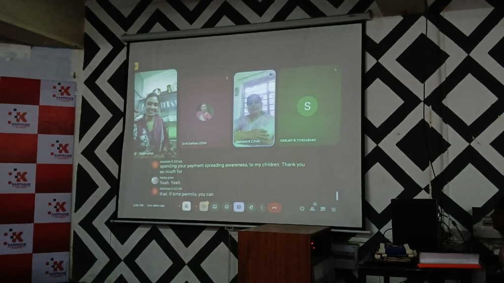 The second session was conducted by Dr. Nisha Priya, Managing Director of S.R. Diabetic Care, Kanchipuram, who spoke on the topic “Be Still and Know Your Health.” Dr. Nisha focused on the importance of physical and mental well-being, emphasizing the connection between menstrual health and overall women’s health. She provided valuable insights into nutrition, lifestyle management, and stress control, offering practical tips to maintain hormonal balance and prevent menstrual-related health issues.
